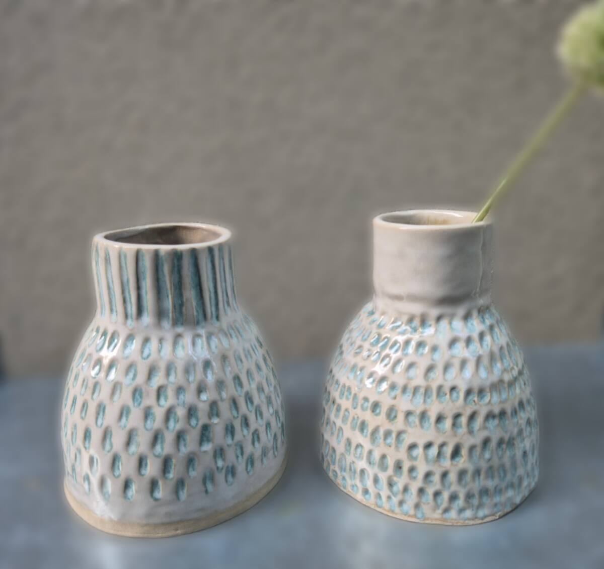 Steinzeug ist ein hochwertiger Ton, der mit feinen Mineralien gemischt und bei hohen Temperaturen gebrannt wird. Er ist besonders widerstandsfähig und langlebig. Jedes Stück ist ein Unikat, von Hand getöpfert. Nach dem Schrühbrand werden die Tonscherben mit hochwertigen glasierenden Farben bemalt und im Anschluss bei 1240 Grad gebrannt.