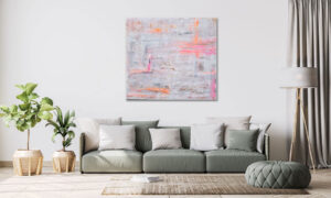 Die Kompositionen der abstrakten Leinwandbilder laden dazu ein, die eigenen Assoziationen zu interpretieren. Mehr oder weniger abstrahiert, bietet jedes Bild ein gewolltes Spiel mit der Wahrnehmung.